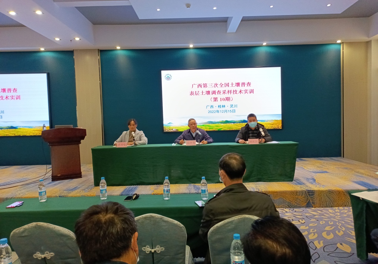 2022年12月15-16日,广西第三次全国土壤普查表层土壤外业调查采样技术实训班(第10期)在我市灵川县举办,参加此次实训班的有自治区和市土壤三普办领导、专家及17个县(市、区)相关技术人员共计95人,15日上午室内培训,15日下午和16日上午到灵川县灵川镇木马村野外实训,现场进行耕地、园地、林地调查和土样采集技术教学。